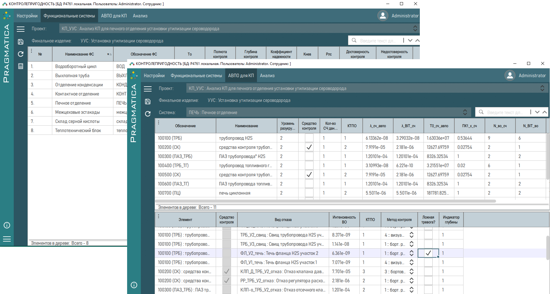 Модуль позволяет выполнить указанную оценку рисков для безопасности изделия в целом и/или для систем (подсистем) в составе изделия. Кроме того, при наличии для изделия нормативных требований к его безопасности при различных нарушениях его функций, модуль позволяет установить требования к безотказности составных частей анализируемого изделия.